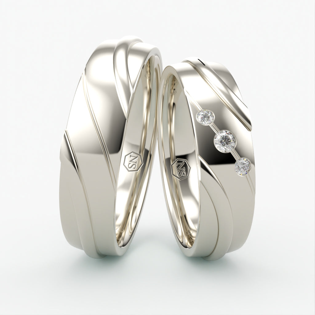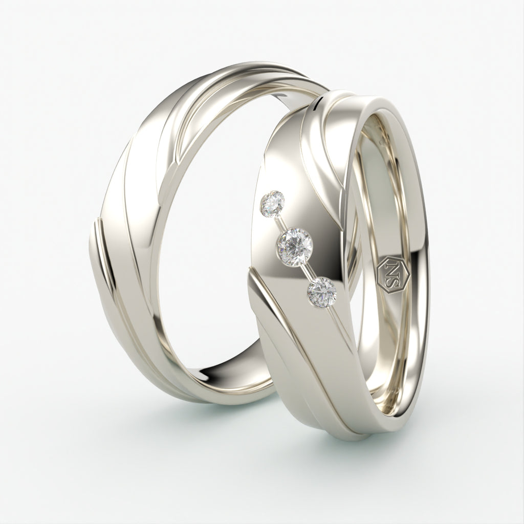 Vielsesringe med Bølget Design & Tre Diamanter - EG 48