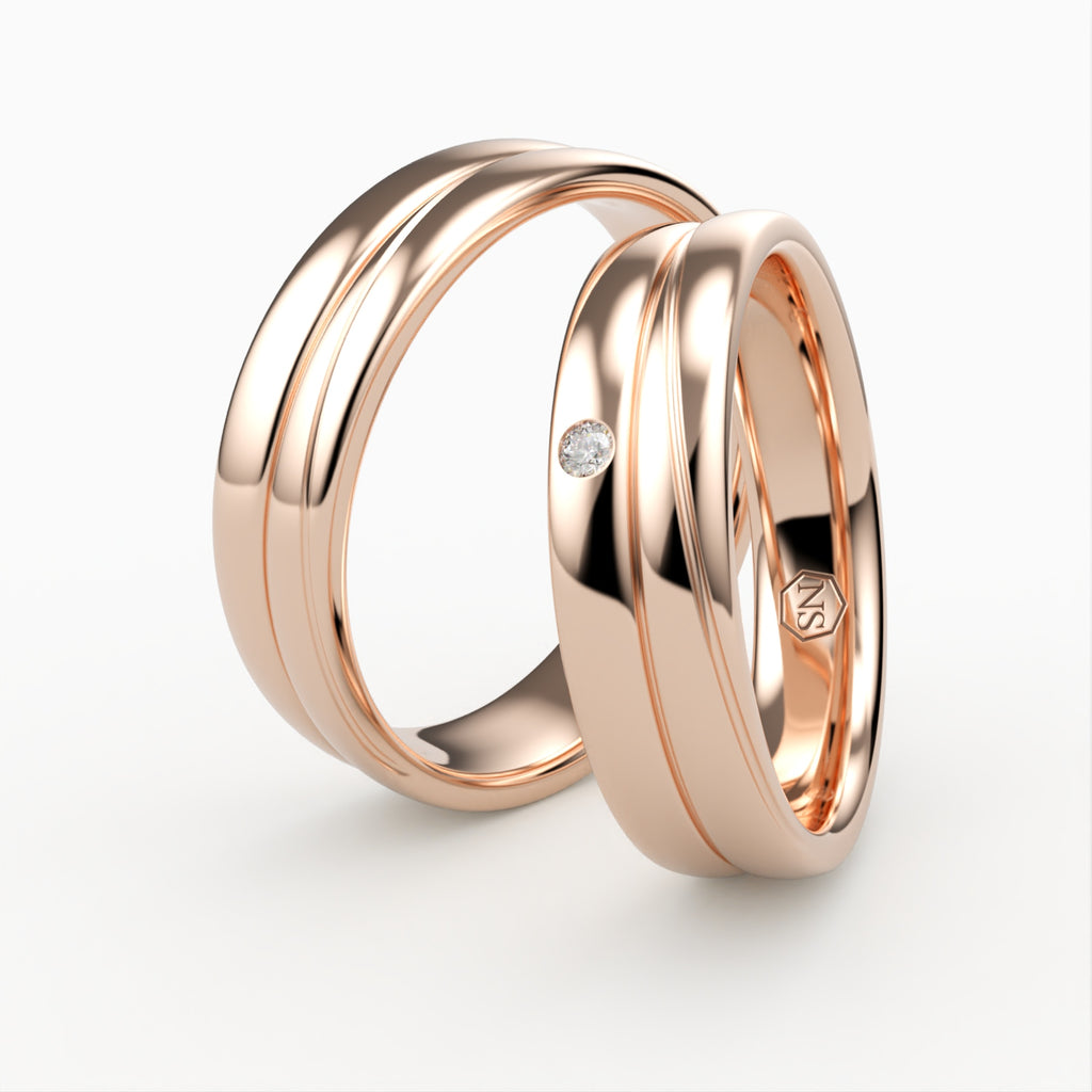Klassiske Vielsesringe med Enkelt Diamant Detalje - EG 53